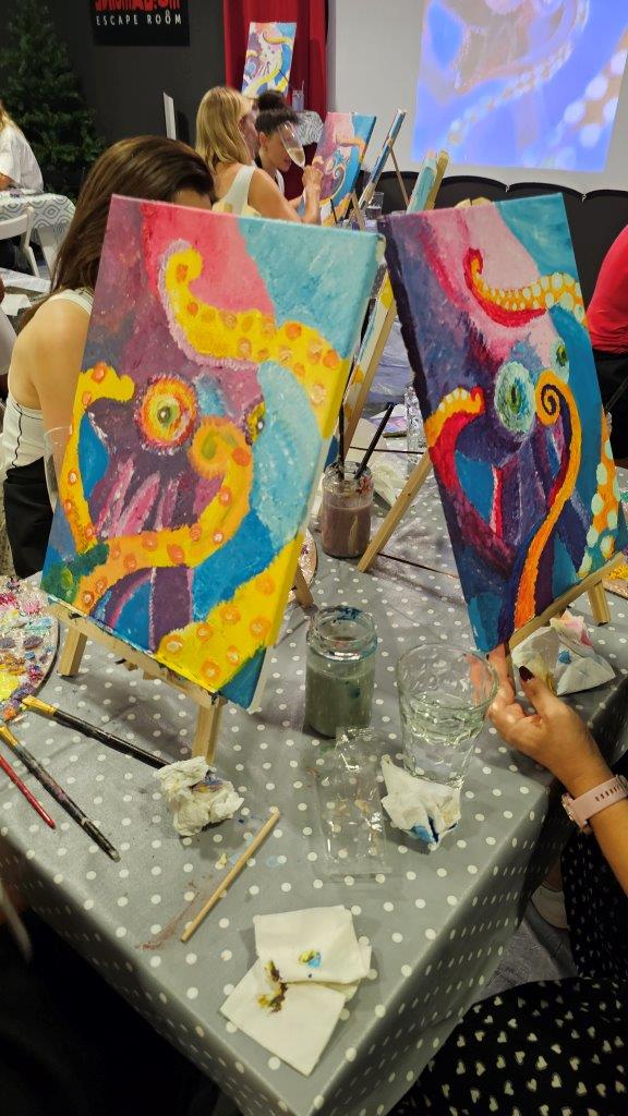 Med ustvarjanjem smo si medsebojno izmenjevali ideje, opazovali tehnike slikanja in se pogovarjali o hobotnici – o njeni pameti, sposobnosti kamuflaže, zapletenih nevralnih mrežah in čustveni kompleksnosti, ki jo morda pogosto spregledamo. Na koncu dneva smo, obdani s 21 slikami hobotnic, slavili umetnost, kreativnost in lepoto narave, ki jo pogosto pozabimo ceniti, ko jo vidimo zgolj skozi kulinarično prizmo. Hobotnica je ta dan postala navdih umetniškega ustvarjanja in globljega razmisleka o njeni veličini.