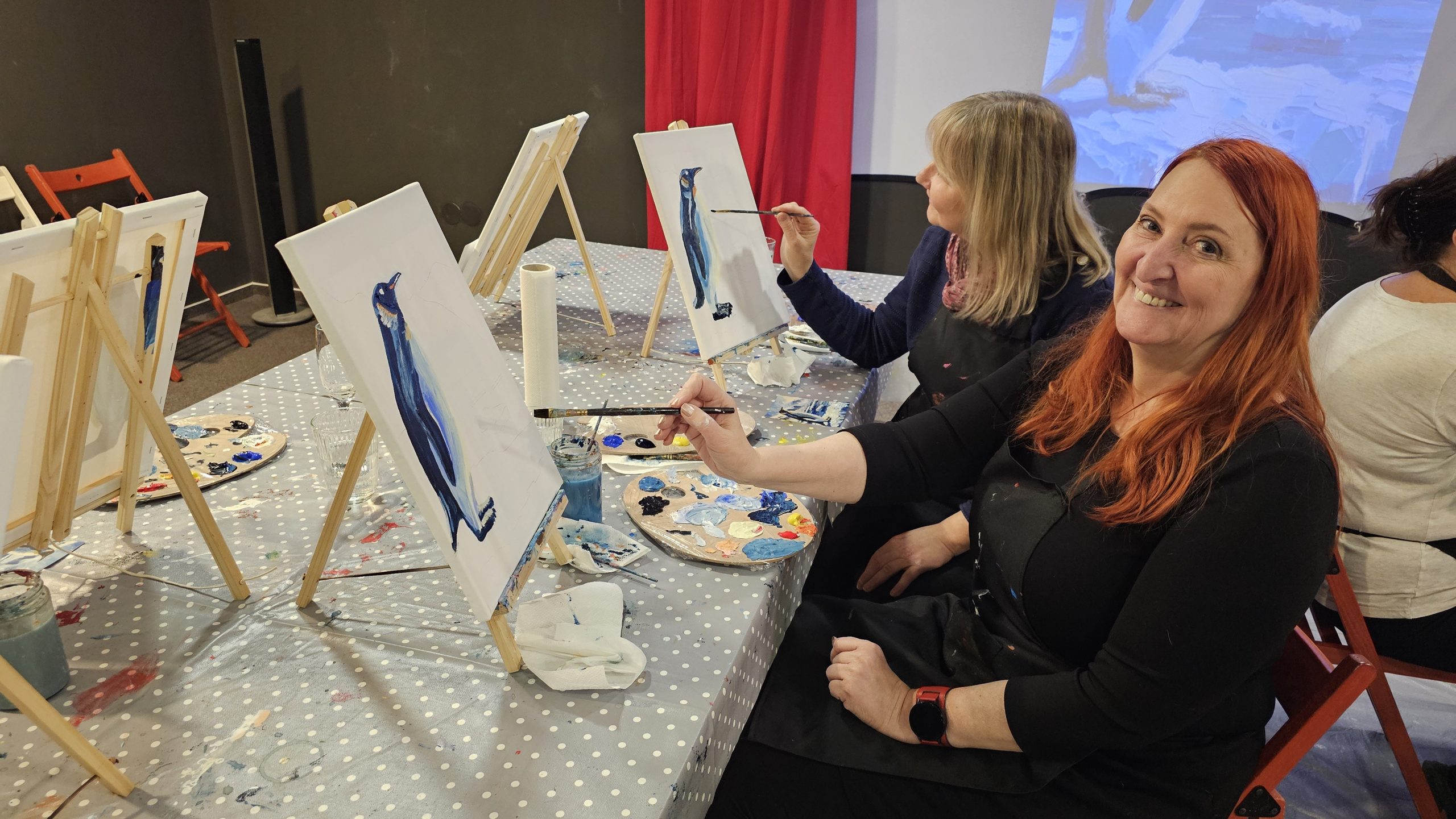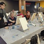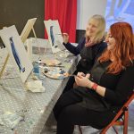 Zaradi prehladne sezone smo prejeli kar precejšnje število odpovedi (vsem želimo res hitro okrevanje!) – a prav ta okoliščina je ustvarila edinstveno, intimno vzdušje. Vzeli smo si čas za svobodno ustvarjanje, sproščen pogovor in učenje – vsaka udeleženka je bila deležna individualnega svetovanja naše izvrstne mentorice Inje, ki nas je nežno (s svojim izbranim humorjem in toplino) popeljala skozi slikarsko izkušnjo.