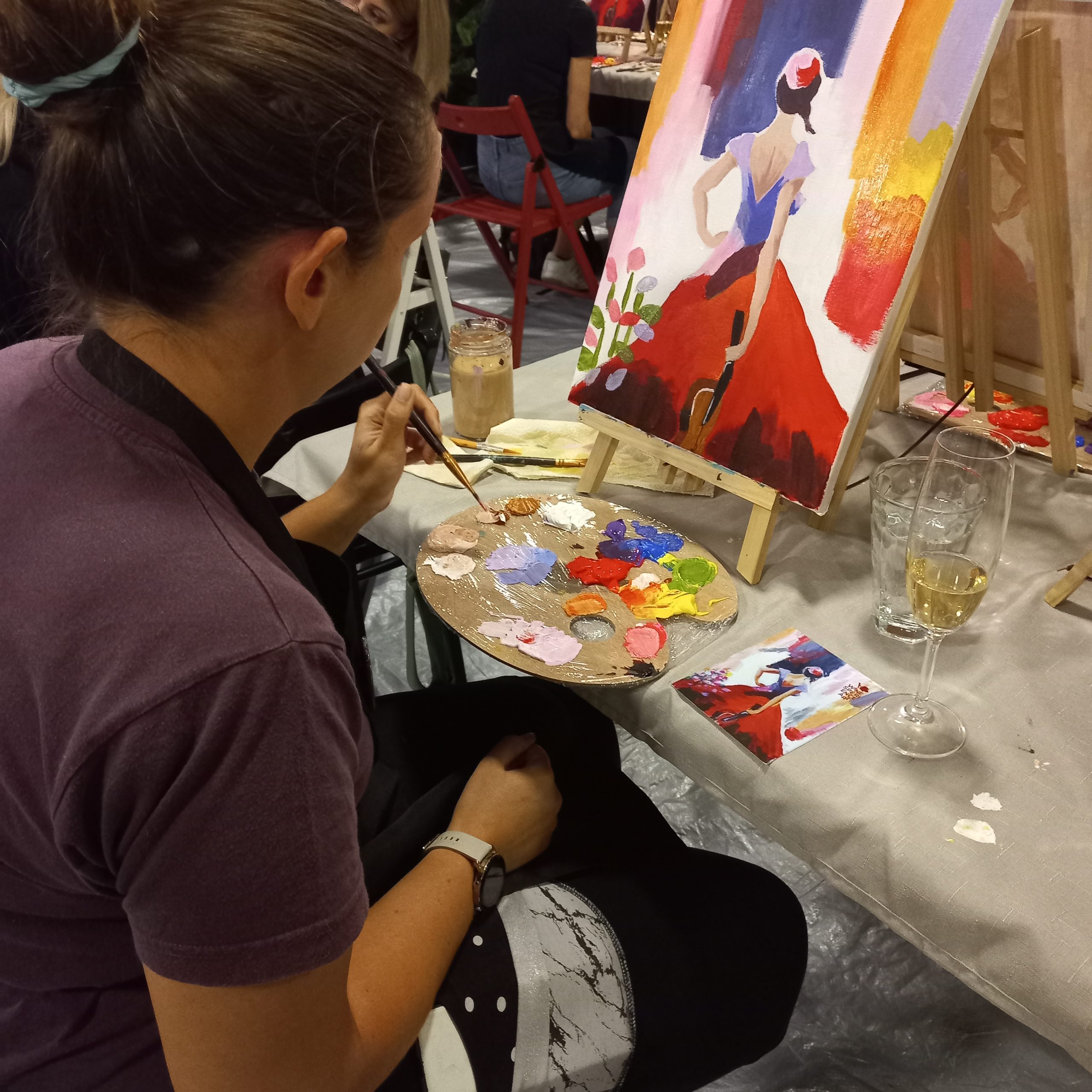 Na svetovni dan glasbe 1. oktobra smo pod vodstvom akademskih slikark Anke Štrukelj in Natalije Premk Jenič naslikali ljubko violinistko.