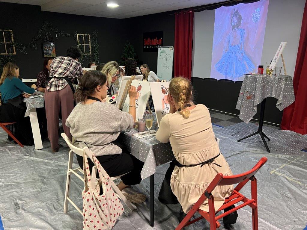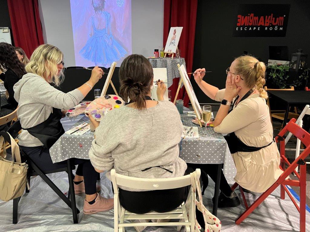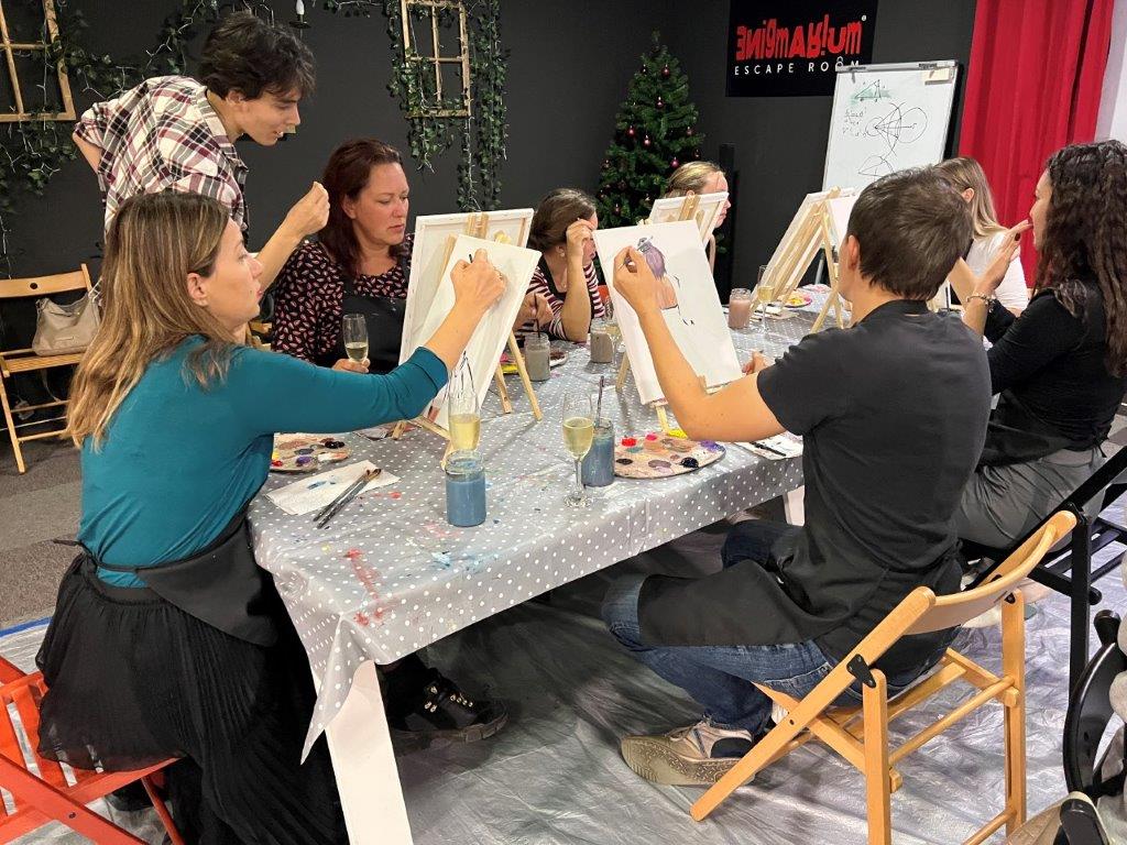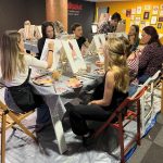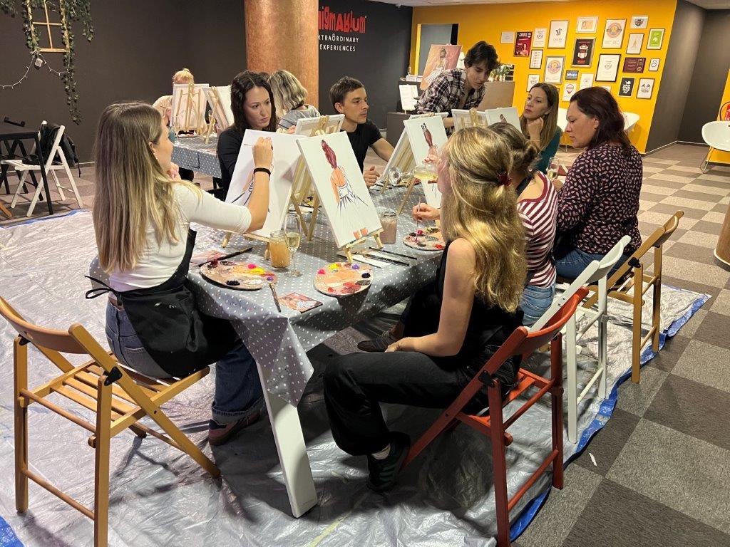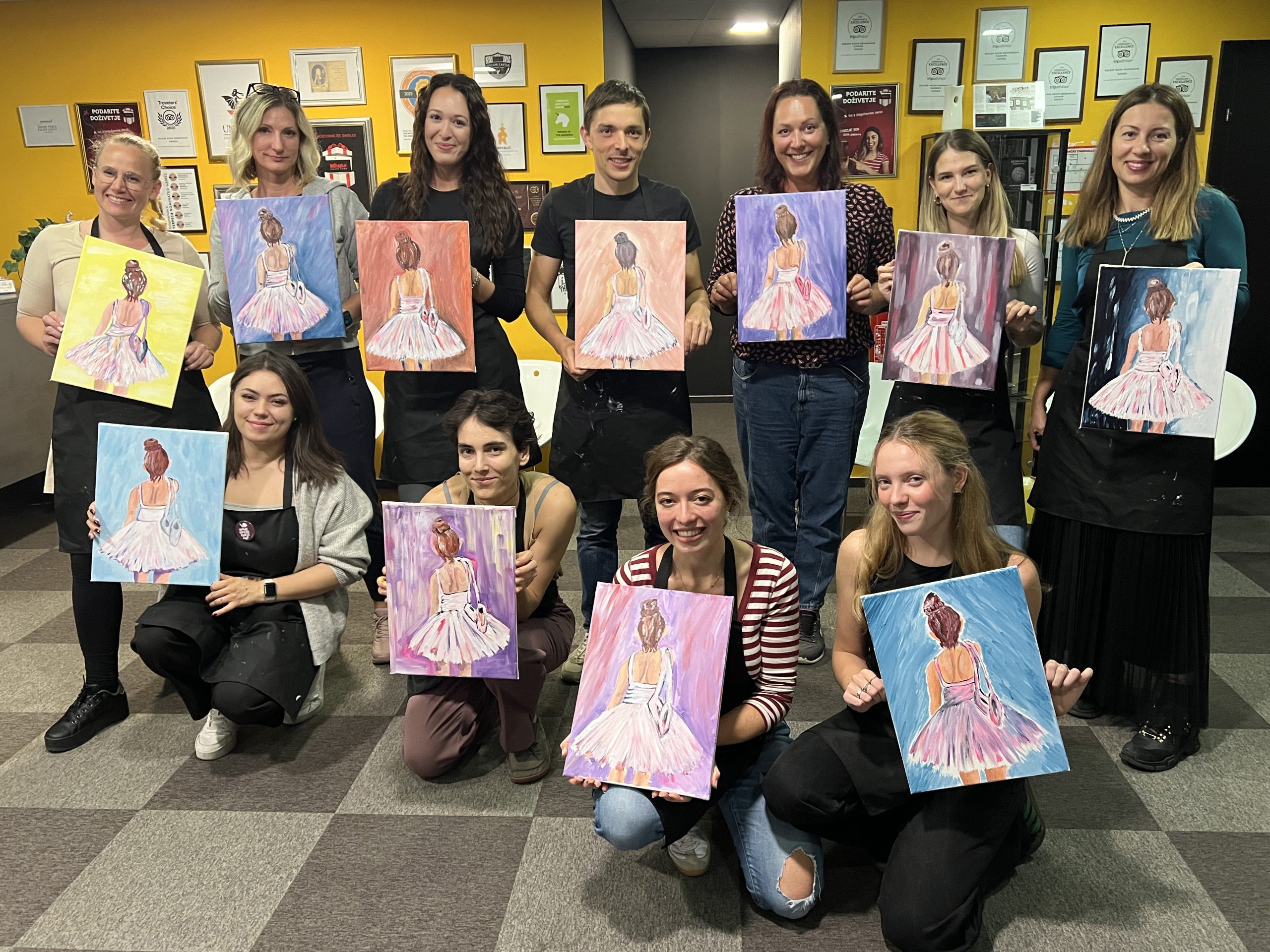 👩‍🎨 Pod budnim, a toplim vodstvom akademske slikarke Inje smo ustvarili 11 edinstvenih interpretacij istega motiva – a niti dve sliki nista bili enaki. Vsaka udeleženka (in tudi udeleženec!) je barvno ozadje, poteze in atmosfero prilagodila svojemu razpoloženju. Od živahno turkizne do nežno breskove, od odločno kontrastnih do mehko prelivenih – slike so postale odsev osebnosti.